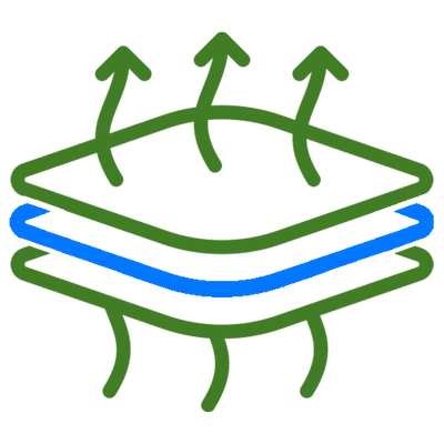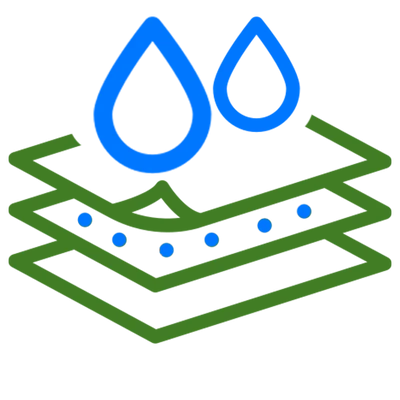 • Middle: Waterproof membrane blocks water.